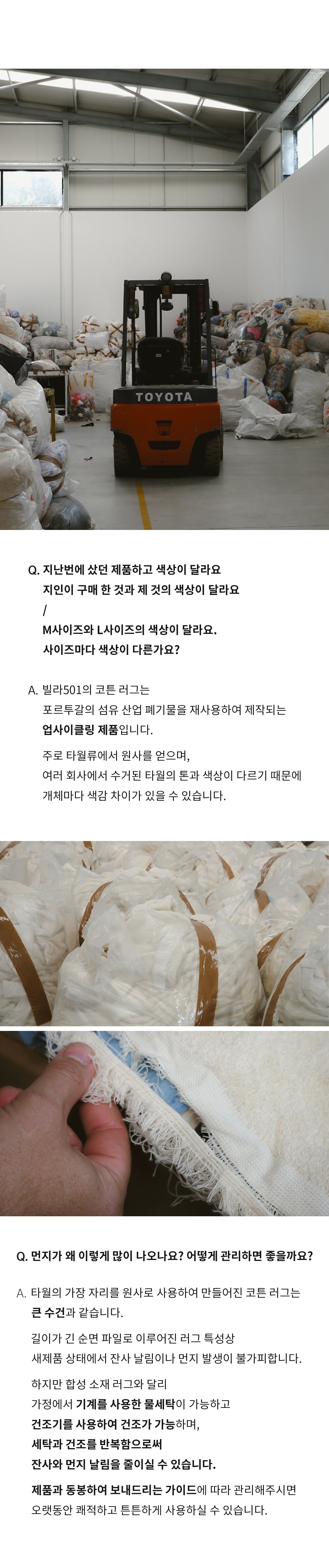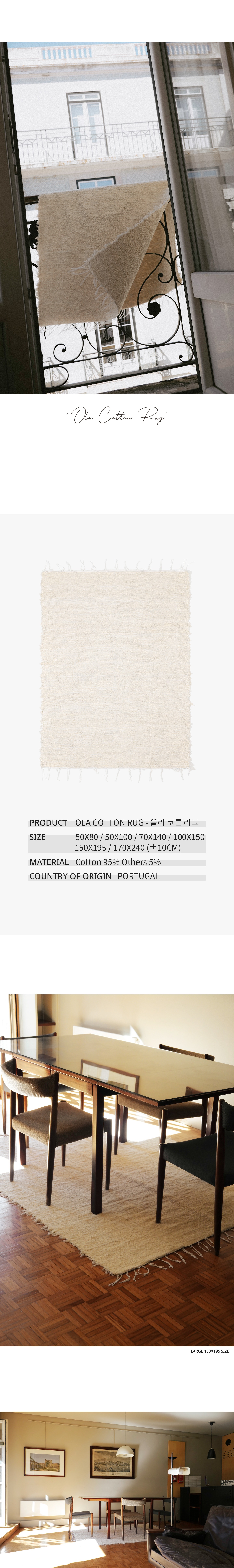 포르투갈 섬유 산업에서 배출되는 섬유 폐기물을 재사용하여 핸드메이드로 직조된 빌라501의 올라 코튼 러그는 면 소재로 이루어져 물세탁으로 편리하게 관리하고 쾌적하게 사용가능한 실용적인 제품입니다.